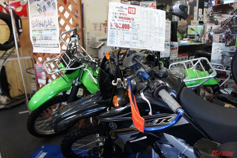 立ち寄り中にビックリな1台が次々と。まずは↓↓コレ。WRの中古車です。今ではとても貴重なアイツになってしまったWR250R/X。つい最近までは普通に買えたのに、とバイク業界の規制の象徴の1台ですね。欲しいひとは展示中なのでご確認くださいませ。