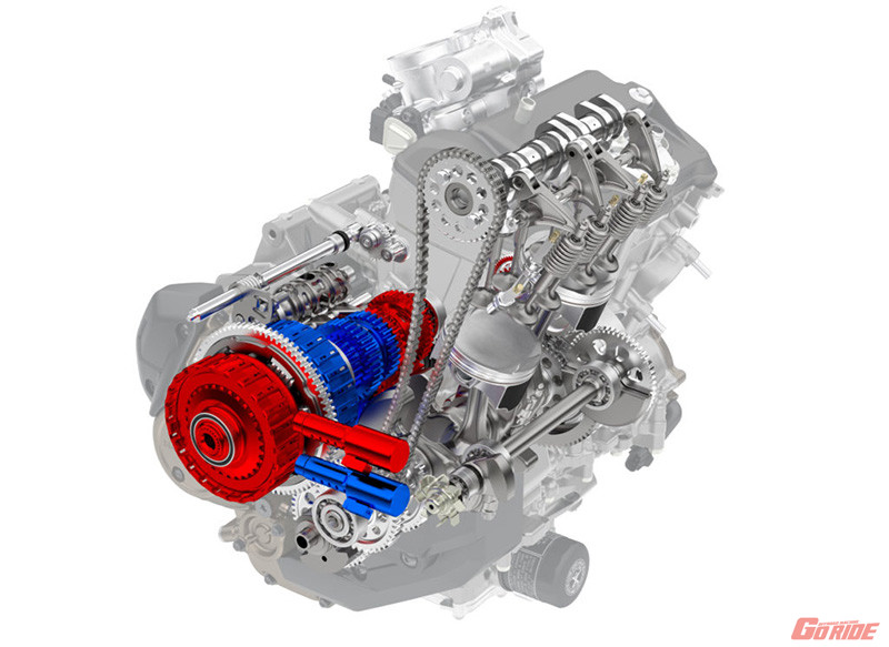 アフリカツインに搭載されているDCTシステム。油圧で2つの(デュアル)クラッチを作動させるトランスミッションなのでDCT。