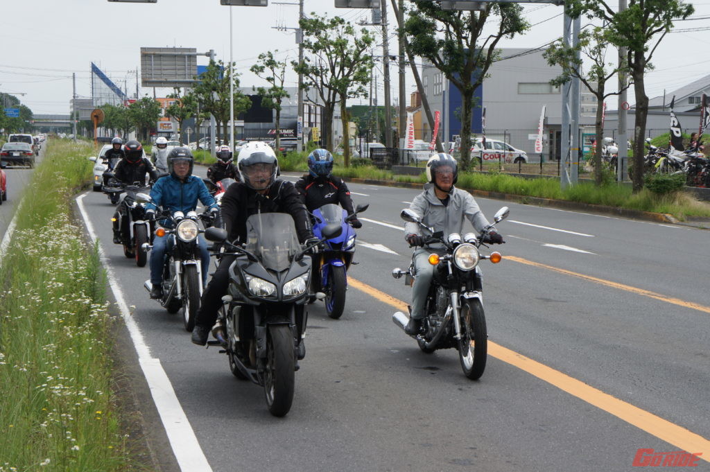 体が温まった午後は、オフ組はレベルを上げての急こう配の上り下りの練習を実践。オンの参加者は店舗を飛び出し、近隣の道の駅までを往復する3時間ほどのツーリングをしながら集団走行などを練習した。