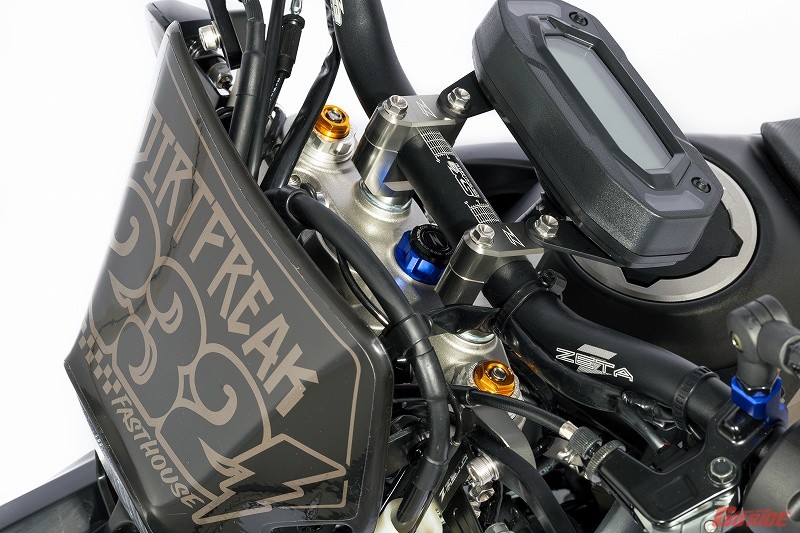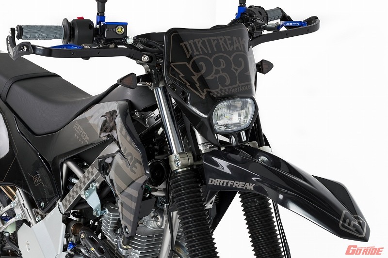 『…ブラックアウトされた車体には、カリフォルニアの人気モトクロスアパレルブランド『FASTHOUSE』のグラフィックがより一層の個性を主張。扱いやすいハンドルポジションと足回りを強化し、オフロードライドもこなせます。見た目だけでなく「走り」の部分にもぬかりはありません…』というダートフリークさんのPRもとてもカッコイイ!