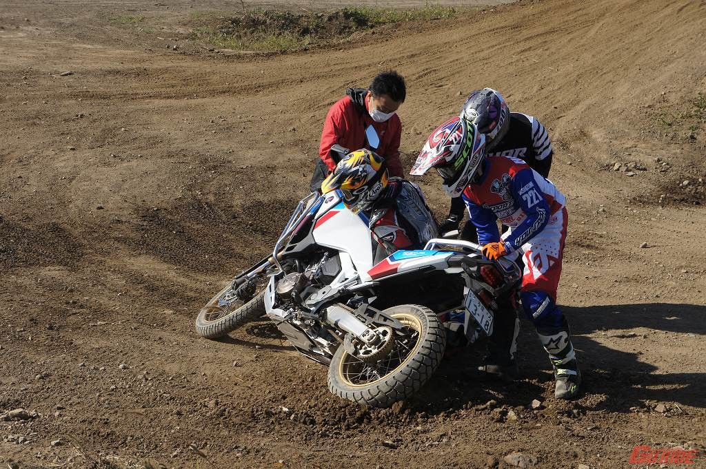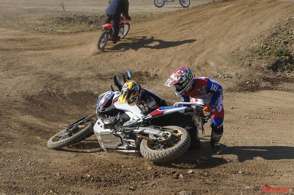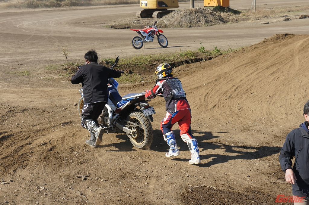 イベントはオフロードが好きなスタッフや興味のあるスタッフに向けてオフロードを楽しむ場所を提供するホンダドリームの福利厚生の一環に等しいイメージですね。みなさん楽しそうでしたよ。詳しくは12月4日発売号に掲載しますが、未収録写真を中心にダイジェストレポートします。
