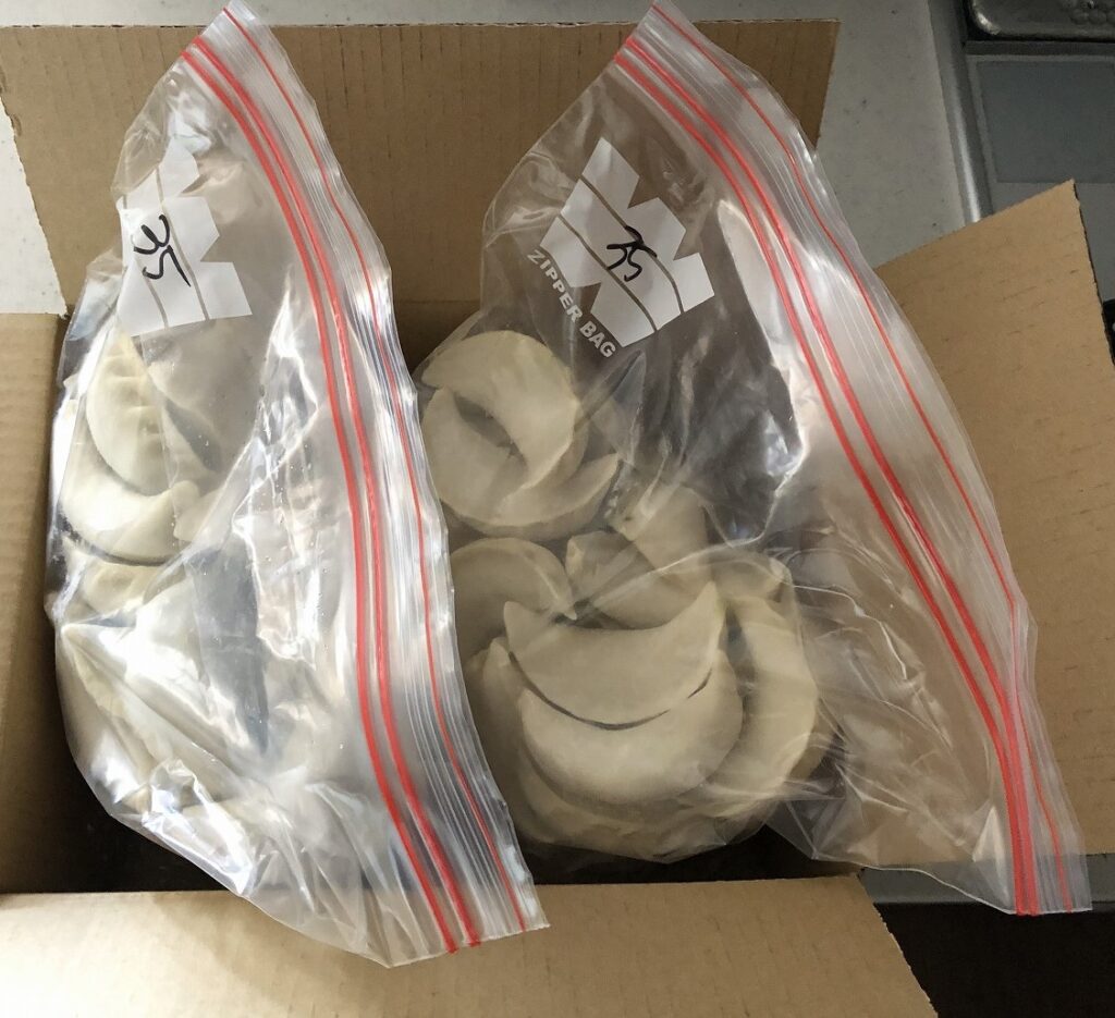 ジップロックの中に凍った餃子が入っています。