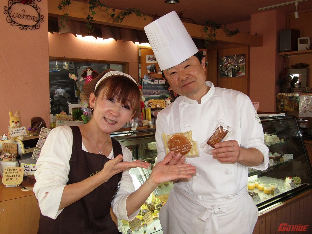 パティスリーシフォン 佐藤豊シェフパティシエ & 陽子さん もともとはRZやNSRなどを楽しんでいたが、昨年約20年ぶりにバイクに復帰しセロー250FEを購入。その乗りやすさをタンデムで夫婦ともに楽しんでいるという。