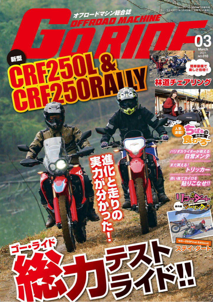 と、ゴー・ライドの最新号は、フルモデルチェンジした新型CRF250L<S>とラリー<S>の