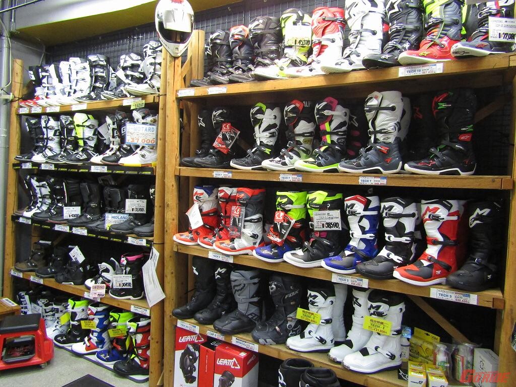 【充実したオフロードコーナー】とにかく売れ筋の人気・定番商品がラインナップ。とくに実際に試着して検討したいブーツやヘルメットのコーナーが充実しておりフィッティングで訪れるライダーも多数。