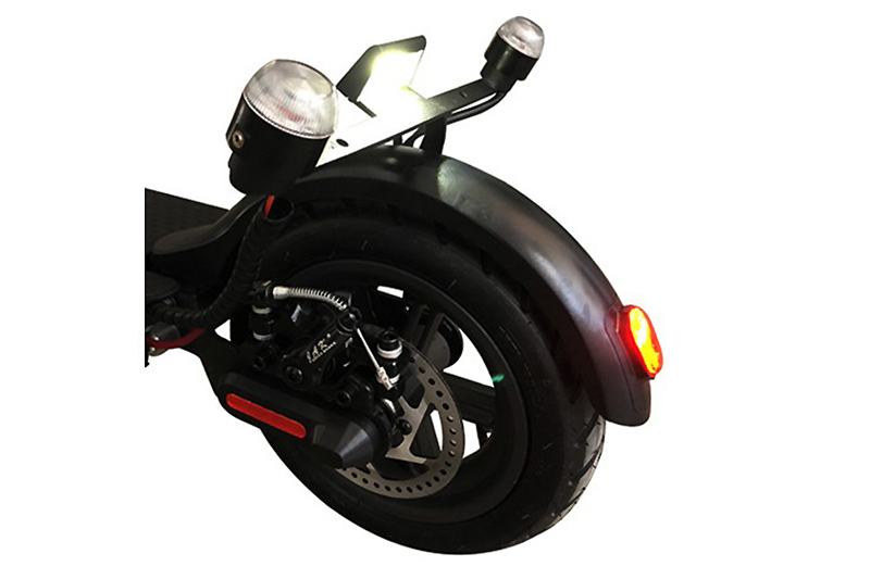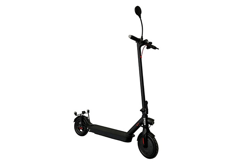 サイズ:展開時/長さ1080㎜×幅480㎜(ハンドル幅)×高さ1310㎜(ミラー含む)、折り畳み時/長さ1080㎜×幅480㎜(ハンドル幅)×高さ480㎜、タイヤサイズ:8.5インチ、充電所要時間:約3~5時間、走行可能距離:18~25km、モーター定格出力:350W、搭載バッテリー:36V7.5AH、重量:14kg、最大荷重:120kg、走行モード:2段階切り替え、登坂能力:最大勾配15度、ブレーキ:前輪(電子ブレーキ)/後輪(ディスクブレーキ)