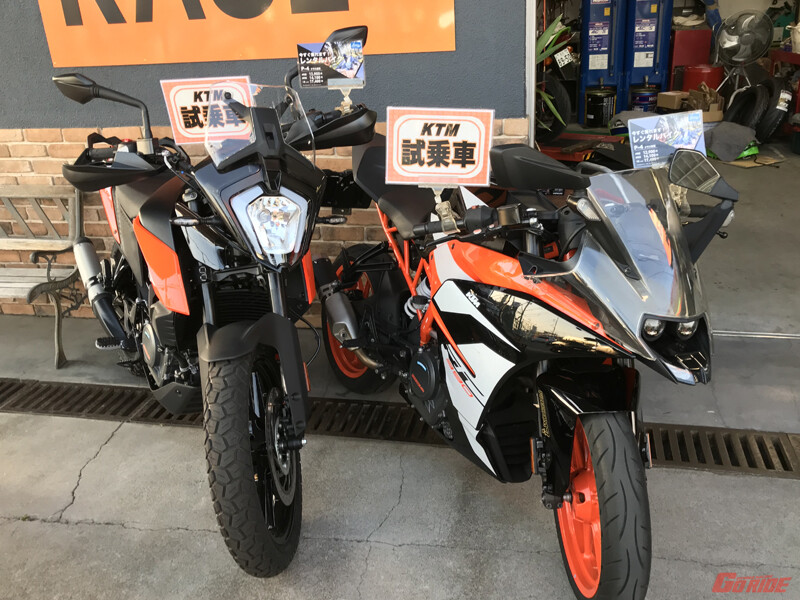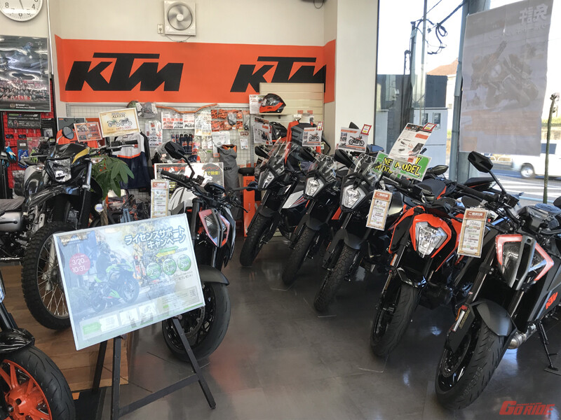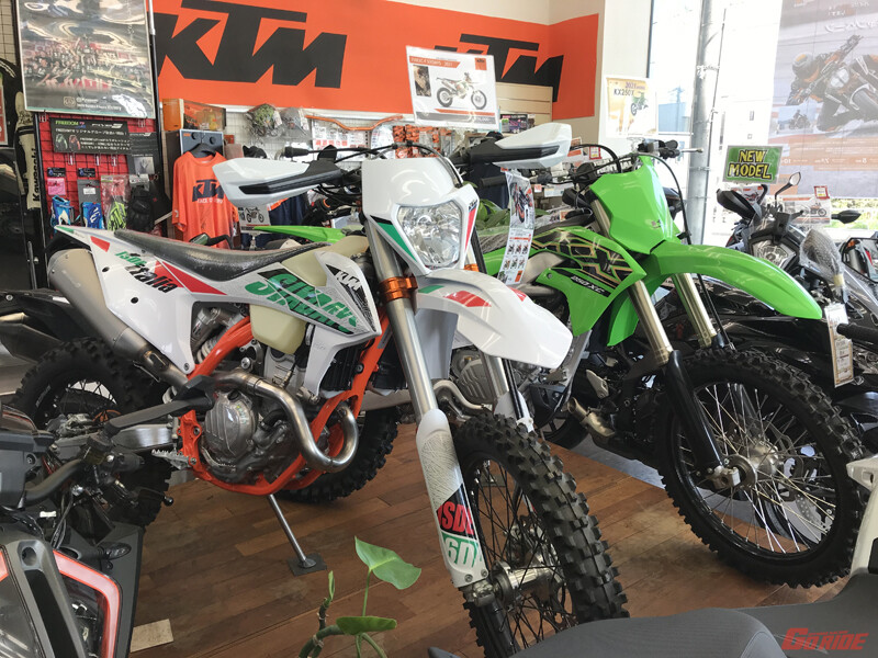 うれしいのが店頭試乗車を常時ラインナップしていることです。カワサキ、KTMのオン&オフの店頭試乗車を多数ラインナップしています。