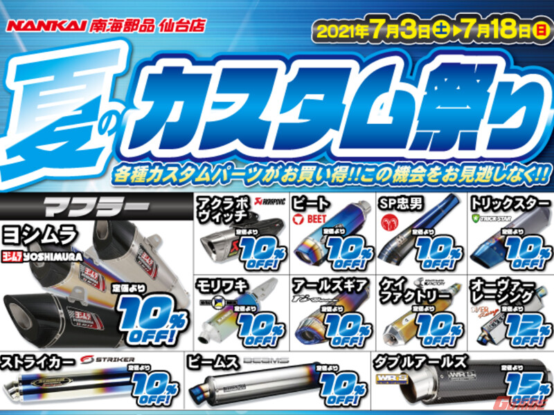 カスタムパーツもお買い得に! 「夏のカスタム祭り」も同時スタート!!