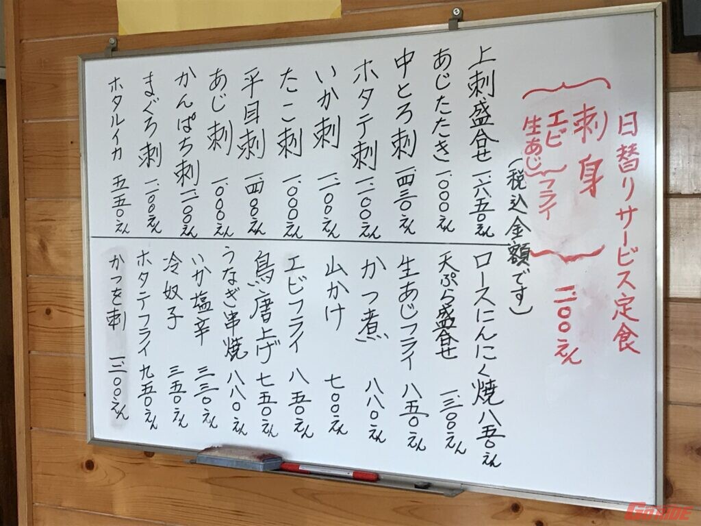 一番人気は「勝丼」。まず丼着時に驚いたのは、そのボリューム。さらに衝撃を受けたのが、カツをリフトした時の「肉厚さ」だ。実測値2.5㎝の衝撃のロースカツが豪快に使用されているのだ。もうひとつの看板メニュー「天丼」も実食。こちらもボリューム満点で大ぶりのエビが2本も。どちらも1000円前後で楽しめて、味・量・価格とも大満足だった。「その二つは人気あるけど、とくに自信あるのは魚料理なんだよ。元が魚屋なんで」と店主。食べたい! しかし満腹度150%の筆者。というわけでいろいろなメニューが楽しめる複数人での来店をお勧めしたい。