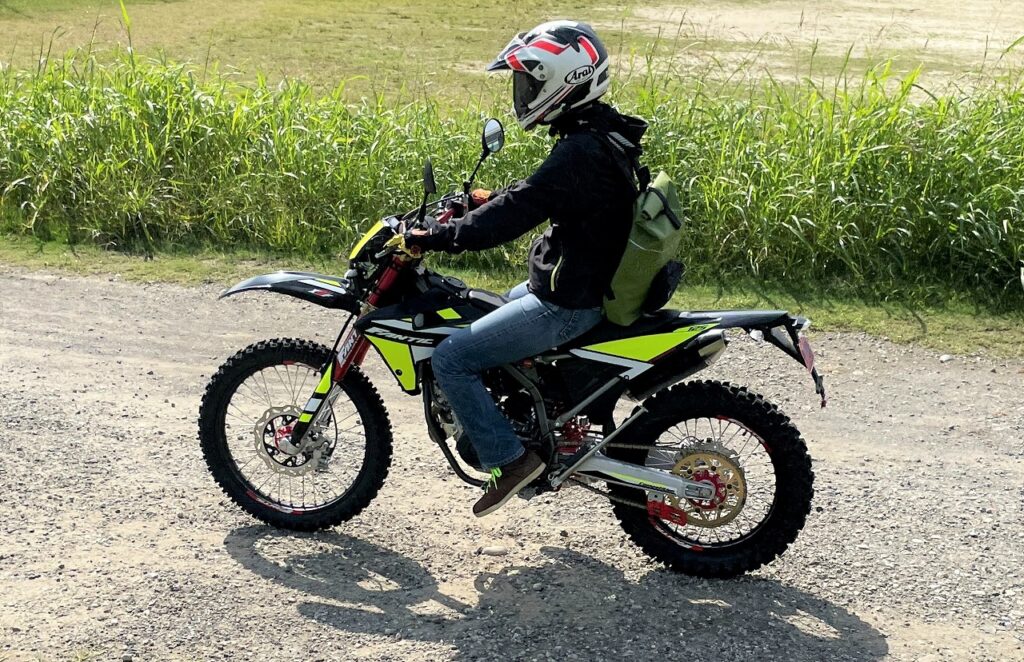 ウインカーなどのスイッチも操作性がよく、トレールよりキビキビ走りたいけど、ナンバー付きレーサーのようなシビアさは欲しくない、といった人にピッタリはまる1台だと思いました。