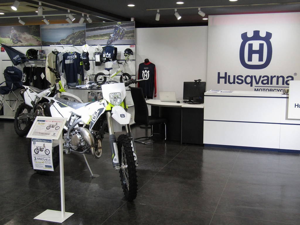 売り場面積 東京都最大級のハスクバーナ・モーターサイクルズ正規ディーラー!! オフロードモデル店頭在庫&オープニングキャンペーン開催中!!