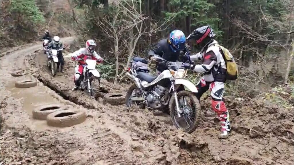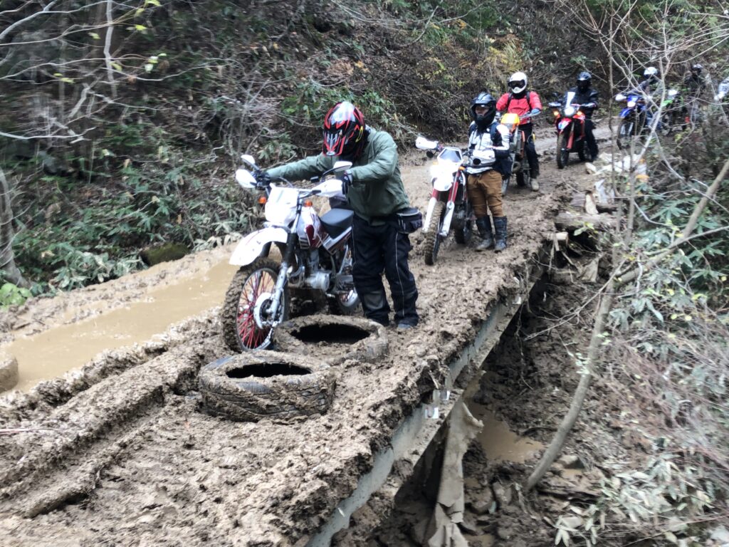 午後からは天候が怪しくなってきたので、予定していた2本の林道をキャンセル。国際スキー場横の林道中祖線、町道下山線、奥滝山峡の林道と走り、スタート&ゴールの加計町のコンビニへ到着し無事終了となりました。2本キャンセルしましたが、7本の芸北の林道を走りました。国際スキー場横の林道中祖線は、伐採作業のクローラーが路面をかき混ぜているので、予想外に泥々、鉄板の橋などあり、初心者、女性ライダーさんをサポートしながら乗り切りました。林道から林道までが近く、無理なく楽しみ、達成感も味わえる芸北の林道群は最高ですよ! ぜひ一緒に走りましょう。