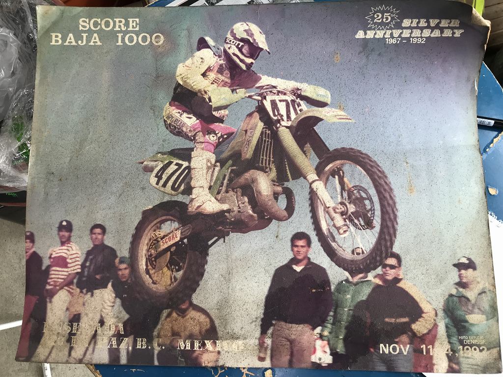 バハ1000出場時のKXで活躍した時の写真パネル。92年の記念大会の模様だ。
