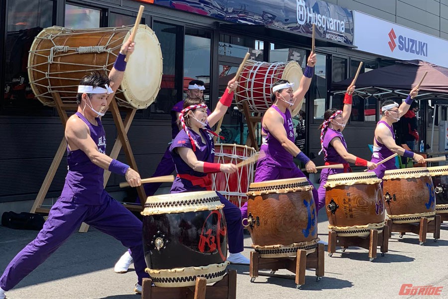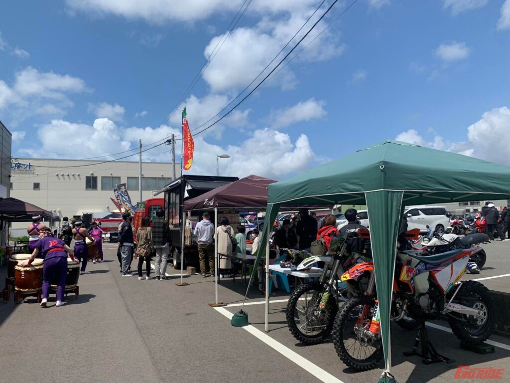 当日は、KTMのアドベンチャーモデルを中心にハスクの最新モデルノーデン901など、話題の試乗車がラインナップ。さらに車両の成約で純正用品クーポン5万円分プレゼントなどもあり、当日は多数の商談に華が咲いた。また車両購入以外でも当日は地元の風の会による太鼓演舞や、ワコーズからはチェーンメンテやヘルメットコーティングサービス、リーフテックのデカール展示、そして地元の人気店のキッチンカーなどが勢ぞろい。バイク好きはもちろん、家族単位で楽しめる2日間となった。