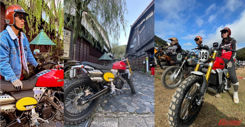 昨年8月、僕の手元にキャバレロ・スクランブラーがやってきました。まず見た目がカッコイイ。パワフルで安定感もある。エギゾーストサウンドも小気味いい。おまけに軽い。でも、軽けりゃいいってもんじゃないのを体現する安定感。これならオフロードもガンガンいけるんじゃないかなー、というのが最初の印象でした。早速、日帰りツーリングに出かけたり、夏のゲレンデへキャンプしに行ったり、秋には妻と往復150㎞程度の日帰りタンデムツーリングへ。タンデム走行でも揺るぎない安定感。後部シートに乗車した妻も「思ってたより楽! 快適!」とご満悦。街を軽く流すのも気軽にできちゃう気楽さも兼ね備えてる。またスクランブラースタイルに合わせて、乗る時の装備、服装も自分なりにこだわるのも楽しみの一つ。少しレトロな雰囲気の装備が似合ったりします。