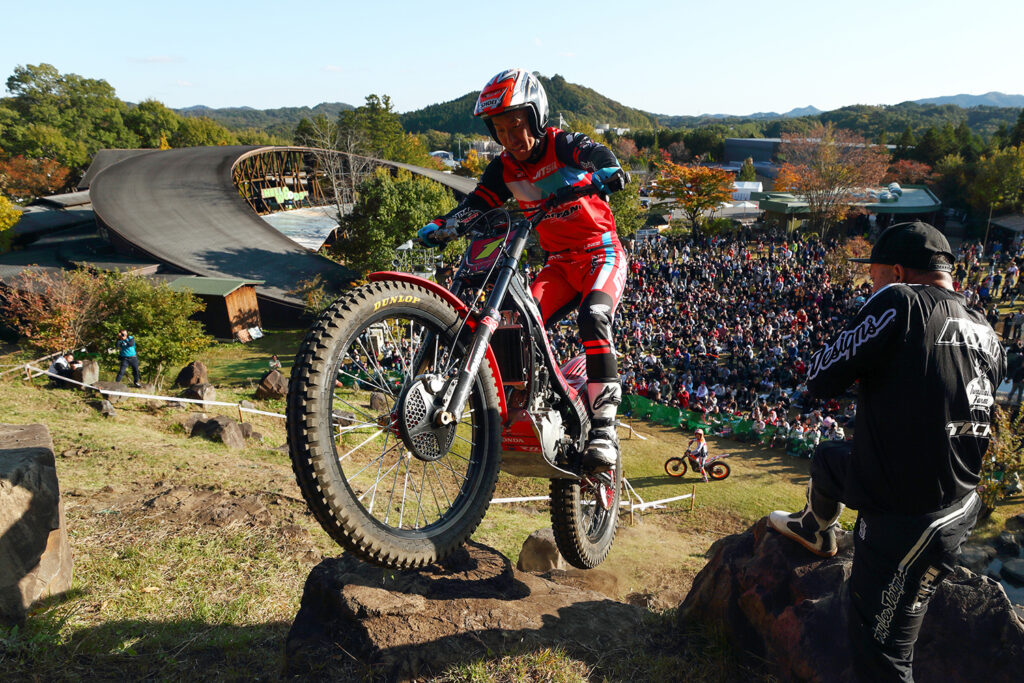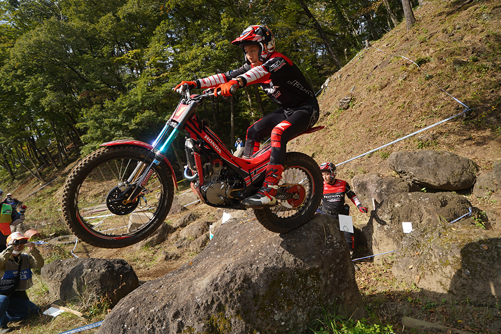 トライアル世界選手権で使用したセクションで行なわれるデモライディングTrial Special(①9:50~10:20、②14:25~14:55 実施場所:ハローウッズ)